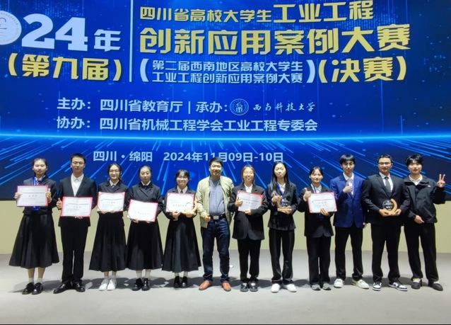 2024119日,由四川省教育厅主办、西南科技大学承办的第九届四川省大学生工业工程创新应用案例大赛(决赛)在西南科技大学成功举办。此次大赛,在我校工业工程专业师生共同努力下共取得了一等奖1项,二等奖2项,三等奖2项的好成绩。