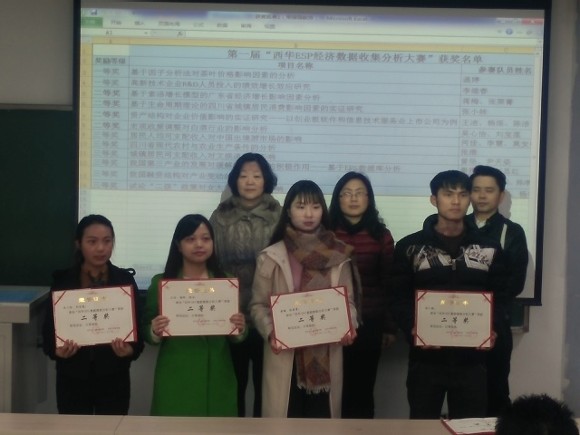 西华大学管理学院和西华大学图书馆联合主办的第一届“西华EPS数据搜集分析大赛”于日前圆满结束。2017年1月5日,大赛颁奖典礼在3B-302举行。管理学院党委书记芮光正、副院长王相平、西华大学图书馆副馆长彭国莉,大赛组委会成员、企业代表北京福卡斯特信息技术有限公司、评委会组长等出席仪式并为获奖学生和指导教师颁奖。