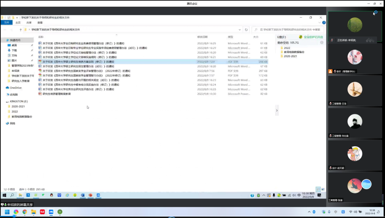 9月8日上午,副院长牟绍波就研究生培养方案;奖助学金管理办法;研究生开题、选题、论文答辩;研究生业务费使用管理办法等一系列政策逐一进行解读。进一步帮助2022级研究生明确研究生学习规划和人生目标。下午,学工办罗剑老师就安全健康教育方面展开讲座。