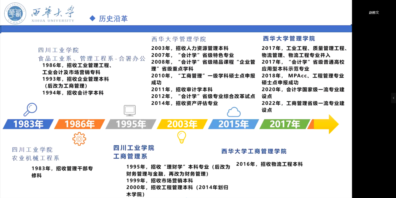 9月9日,学院组织会计、会计学、工商管理、工程管理等专业导师、研究生双选见面会。见面会由副院长牟绍波主持。会上,各位研究生导师从研究方向、从事研究生项目、科研成果、招生要求等方面进行了介绍。2022级研究生新生逐一从个人兴趣爱好、研究生生涯规划等方面展开介绍。随后,副院长牟绍波就双选规则、要求等方面进行讲解。