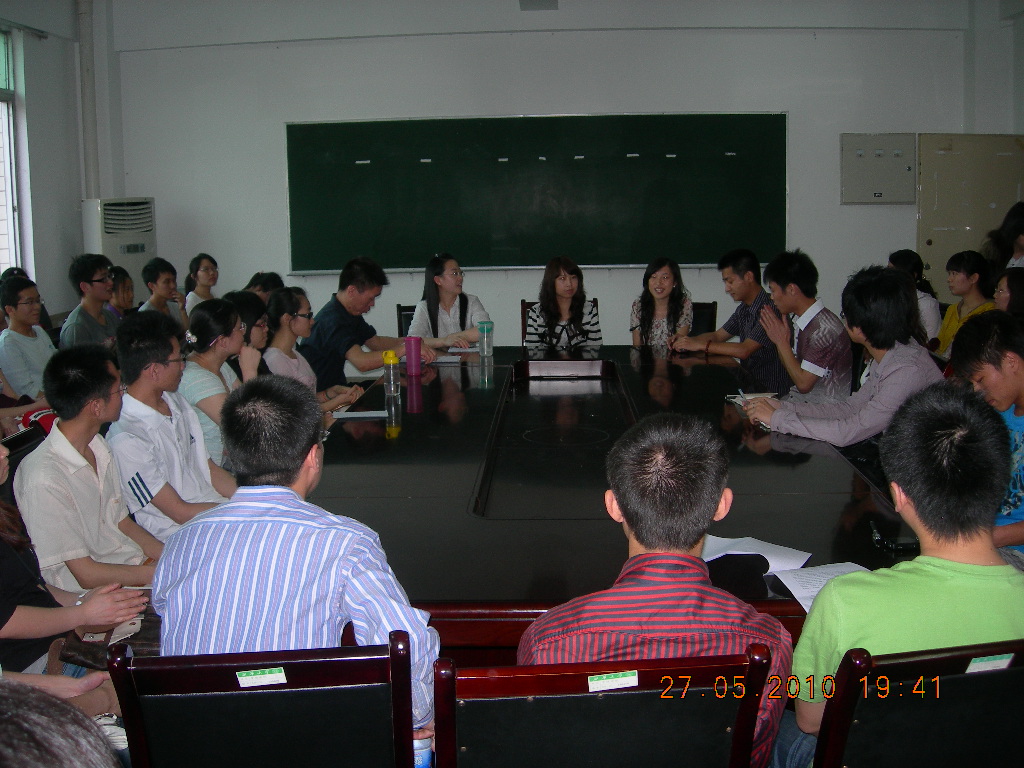 本会议均由管理学院李萌老师主持。交流会上,往届考取四川大学、西南财大、西南交大等各校研究生的学长学姐向大家介绍备考经验。他们详细地讲述了自己的考研复习过程,提出了 “重在抓基础”的复习技巧,提醒大家切忌眼高手低,并强调了持之以恒的复习态度和多做真题、多总结真题的备考策略,而在政治的复习上要因人而异,建议大家要根据自己的记忆特点来把握。会中,学长学姐们还列举出了备考过程中所涉及的具体资料及书籍。他们宝贵的考研经验在为准备考研的同学们指明方向的同时也给予了同学们最大的支持与动力。