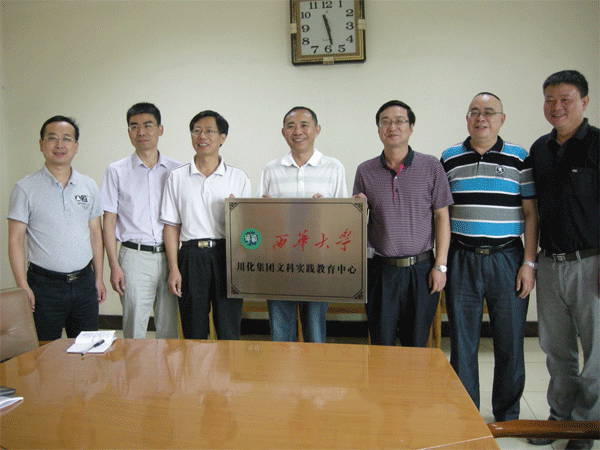 经过近一年时间的沟通、协调,2014年9月5日,“西华大学川化集团文科实践教育中心”揭牌仪式在川化集团隆重举行。西华大学管理学院院长章道云教授、教务处副处长黄琦教授、管理学院副书记王相平副研究员、副院长周佩副教授、院长助理牟绍波教授、会计系主任李君副教授、教学办主任姚世斌副教授以及公司总经理刘勇高级经济师、副总经理邓赵荣高级工程师等出席揭牌仪式。