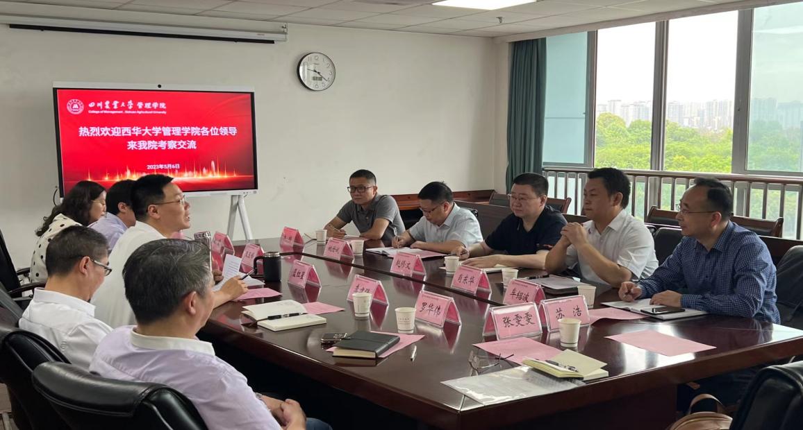 5月6日上午,管理学院党委书记肖东华、院长赵修文、副院长姚世斌、牟绍波,会计与财务系主任王翊等一行7人赴四川农业大学管理学院就国家一流专业建设、人才培养方案制定等方面开展调研。四川农业大学管理学院党委书记李建强、院长蓝红星、副院长王玉峰、财务管理系教授罗华伟、党办主任马刚、行政办主任姚霞等参加了座谈会,会议由王玉峰主持。