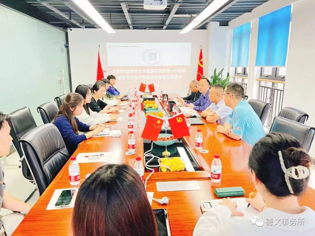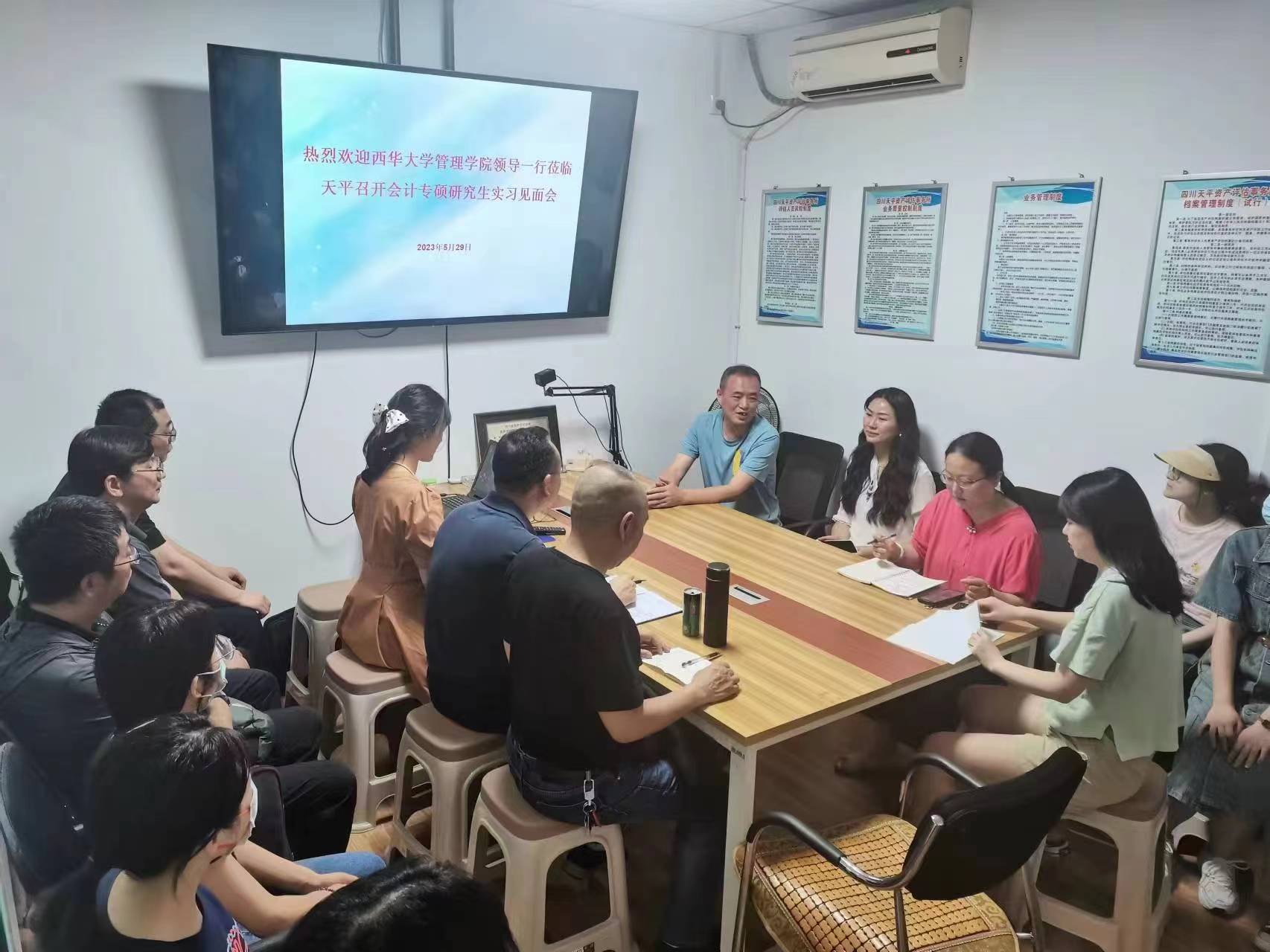2023年5月25日-5月29日,管理学院副院长牟绍波带队,学院学科与研究生教育办公室主任、会计与财务系副主任张雯雯、导师谢合明、胡伟、马法尧、姚世斌、周佩等分别赴中天浩会计事务所、四川德文会计事务所、四川德维会计事务所和四川天平资产评估事务所,组织召开了2021级MPACC学员实习见面会,开启了我院2021级MPACC学员为期2个月的行业集中实践。