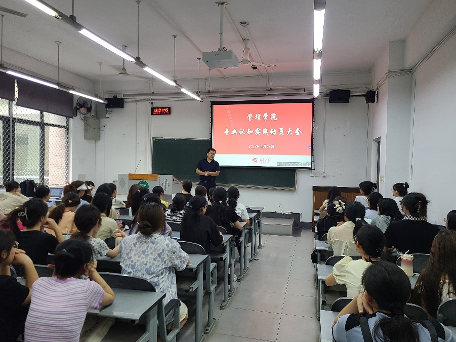 为了推进2021级学生专业认知实习组织工作,进一步促进学生对所学知识和技能进行实践运用、总结和深化,6月26日管理学院工商管理系组织召开了2021级工商管理专业认识实习动员大会,引导学生明确认知实习的目的和意义,为接下来顺利开展实习做好前期动员准备。管理学院副院长姚世斌、工商管理系主任丁灿以及各带队老师出席会议,会议由丁灿主持。
