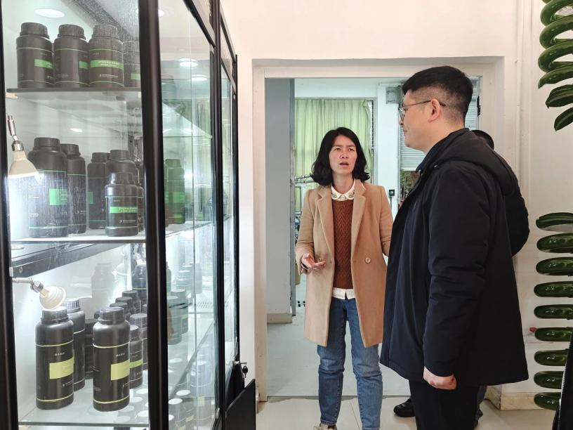 西华大学河湖中心主任助理宋菲菲带领达州市生态环境局副局长杨露阳一行先后参观了河湖中心微生物分子实验室、生态制剂研发实验室、微生物净水性能评估实验室等。简龙骥主任介绍了模拟三面光河道,并展示了从环境中提取的具有净化功能的微生物的测试及培养工作。