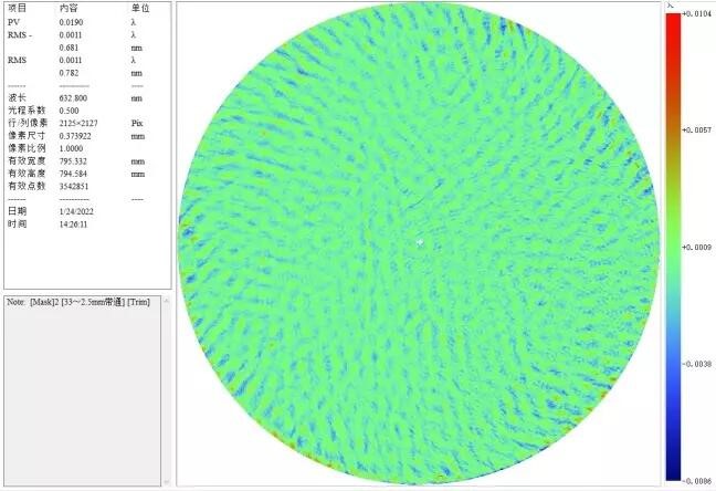 “φ800mm超大口径平面数字激光干涉仪”产品系统精度
