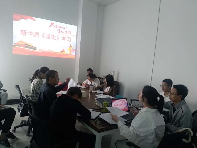 在新中国成立70周年华诞来临之际,教工支部书记余莎莎以《学国史颂党恩》为题讲党课,带领支部成员学习新中国党史。首先党支部书记带领全体支部党员回顾了新中国成立以来各个历史时期的重大事件:从新中国成立到十一届三中全会的召开,再到现在的中国特色社会新时代建设,支部书记从一个个历史巨变中阐述了党团结带领中国人民从站起来、富起来到强起来的艰辛探索和历史必然。余莎莎提到,重视历史、研究历史、借鉴历史,才能了解昨天、把握今天、开创明天。最后支部书记强调全体教师党员要以史为鉴,学会历史思维、培养历史眼光、强化历史担当,要在“不忘初心,牢记使命”主题教育活动中吸取养分,要在教书育人的实践中践行中国共产党人的初心和使命,不断提高自己的科研、教学能力,为学校学院高水平发展贡献自己的力量。