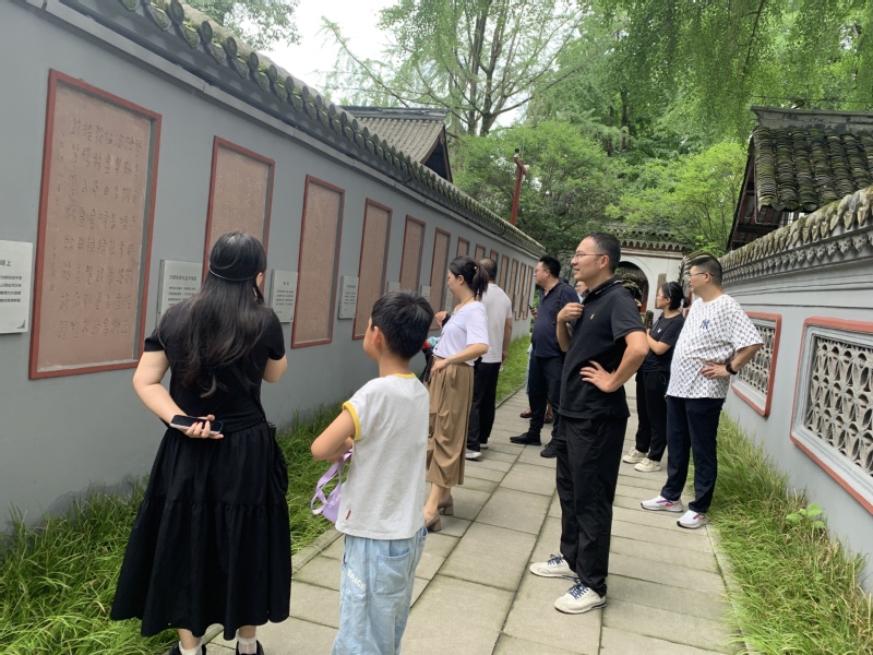 坐落于崇州市城区的罨画池博物馆是全国重点文物保护单位、四川省爱国主义教育基地、成都市家风教育示范基地,主要弘扬了传统文学文化、歌颂爱国主义思想,内有爱国主义诗人陆游、杜甫等历史文人留下的优美诗篇。在讲解员的带领下,党员同志们深入陆游祠参观,祠堂紧扣爱国主题。通过参观学习,同志们解了到南宋爱国诗人陆游的廉洁家风和生平事迹。陆游公忠体国、廉直传家的精神品质,赵抃清廉为官、勤政为民的光辉事迹,让同志们深受触动。