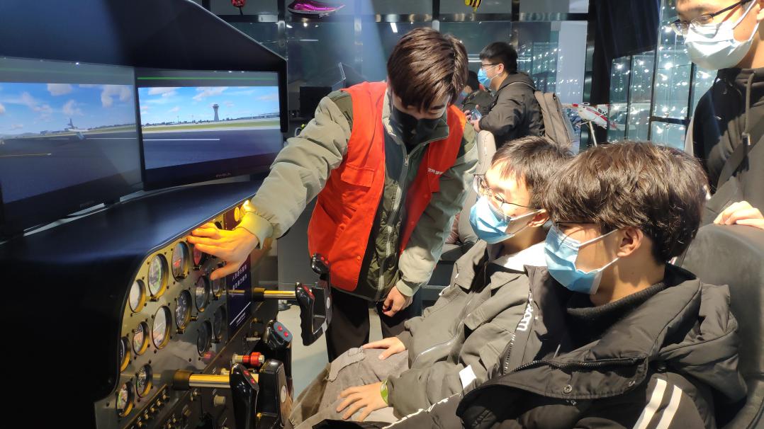 在参观结束前,同学们自由体验操作了许多飞行模拟装置,通过讲解员对模拟驾驶等装置的细致讲解,同学们切身体验到了驾驶飞机的乐趣;其中波音737真舱驾驶体验更是让同学们兴奋不已。