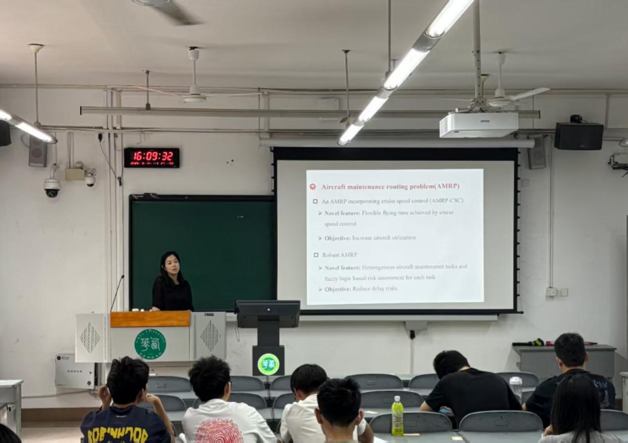 此次报告,张庆博士将理论研究与实际应用相结合,展现了数学启发式算法在航空领域的巨大潜力,为师生们带来新的学术视野和研究思路,拓宽了大家对航空航天领域的认知视野,还激发了同学们对相关知识的探索热情。