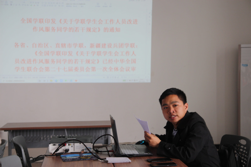 培训会中,杨霄老师首先带领学院全体部门成员详细研读了《关于学联学生会工作人员改进作风服务同学的若干规定》及《关于落实共青团和学联对高校学生会(研究生会)指导管理责任的若干规定(试行)的通知》(中青联发〔2020〕4号),并结合实际工作,使得同学们对文件的学习有了深刻的理解。