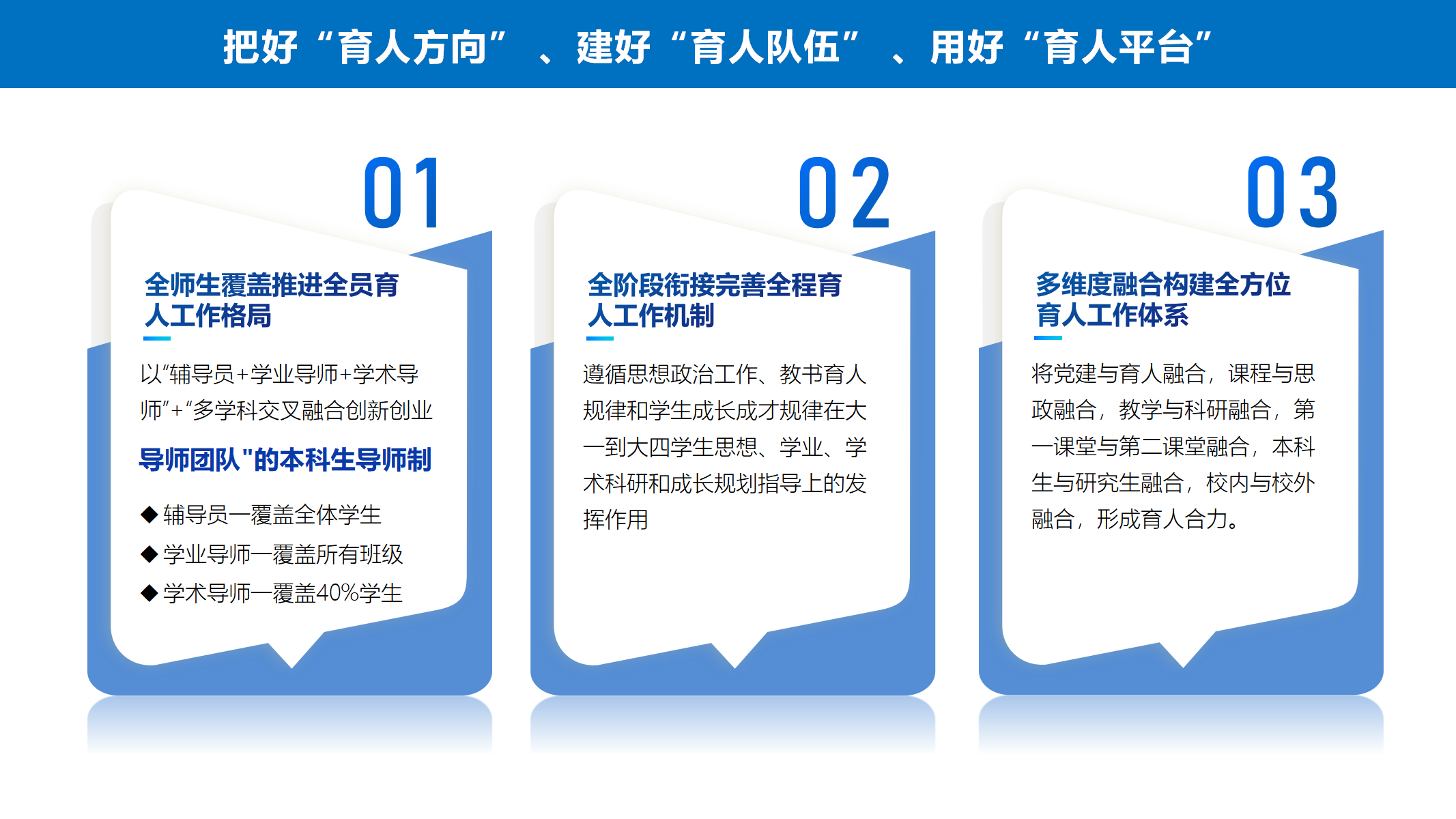 航空航天学院本科生导师制于2021年5月开始实施,在三全育人理念下,着力培养本科生学习能力、科研能力和创新实践能力。现有17名学业导师和34名学术导师,实现了本科生学业导师全覆盖。