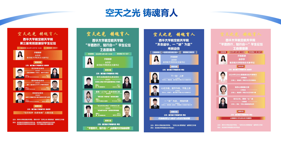 学院依托“空天之光,铸魂育人”工作室,围绕学生成长需求构建“思想引领铸魂、学风建设强基、志愿服务润心、心理健康护航”的全维度育人体系,助力学生在空天报国的赛道上跑出青春加速度。