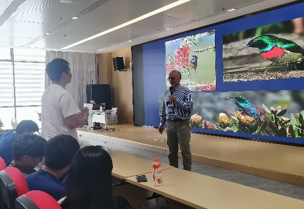 讲座伊始,Robert Dudley教授以一段对中国文化与技术发展的观察开启了这场跨学科对话,教授指出在其在过去的研究中,深刻感受到中国不仅是现代科技的追赶者,更是许多创新灵感的‘源头活水’。” Dudley教授特别提到,他在研究蜂鸟飞行时,也观察了中国众多鸟类的飞行特点,深刻理解‘自然启发技术’的本质——它不仅是生物原型的复制,更是人类对自然规律的文化共鸣与再创造。”这一番“文化序曲”瞬间拉近了在场师生的距离,也让后续的技术讲解更具人文温度。