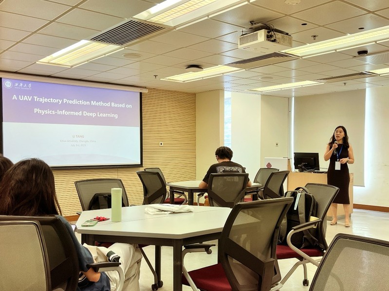 会议期间,唐立副教授以《A UAV Trajectory Prediction Method Based on Physics-Informed Deep Learning》为题作了专题学术报告,系统介绍了团队在无人机轨迹预测方面的最新研究成果。报告中将物理信息引入深度学习模型,有效提升了预测的精度与实用性,报告内容引起了与会学者的广泛关注和高度评价。