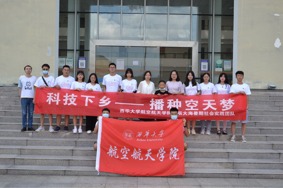 西华大学航空航天学院“星辰大海”社会实践团队于2021年7月19日至7月23日赴德阳市中江县开展“科技下乡”暑期社会实践活动。此次活动主要围绕“科技下乡——播种空天梦”主题,开展航空航天历史讲座、航空航天“十万个为什么”、航空航天知识竞答、手工制作、描绘未来智能交通等一系列活动。团队共有来自航空航天学院、法学院、管理学院、经济学院等13名成员,航空航天学院学工办主任奉姣为指导老师。