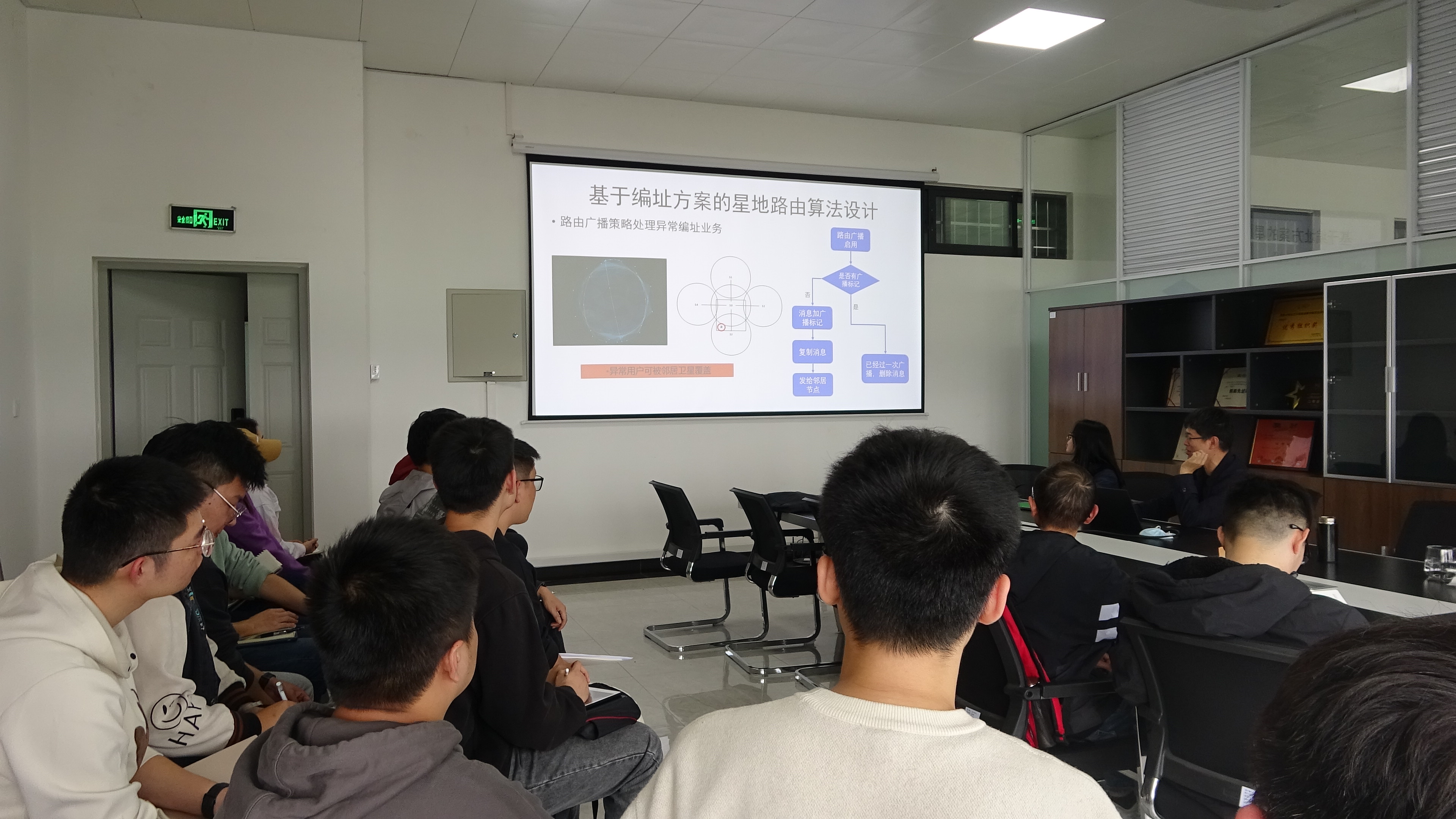 卫星移动中信息传递的中断原因、移动中卫星对于地球投影覆盖的最优图形、构建模型所用到的数学公式等,都让在场的研究生们大开眼界。特别是张教授在展示计算机仿真及仿真结果时,通过结果分析和实验平台验证来解决问题,师生们都热情高涨,对于张教授解决问题的思路和方法都表示获益良多。