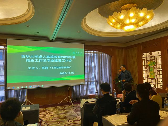 为积极贯彻落实中共中央、国务院印发《深化新时代教育评价改革总体方案》,全面贯彻党的教育方针,推动构建服务全民终身学习的教育体系,努力提高成人高等教育的教育教学质量,继续教育学院于2020年11月27日在成都召开了西华大学成人高等教育2020年度招生工作及专业建设工作会,进一步研究新形势下成人高等教育教学方面存在的问题,规范招生专业建设,安排布置下一年度招生工作。