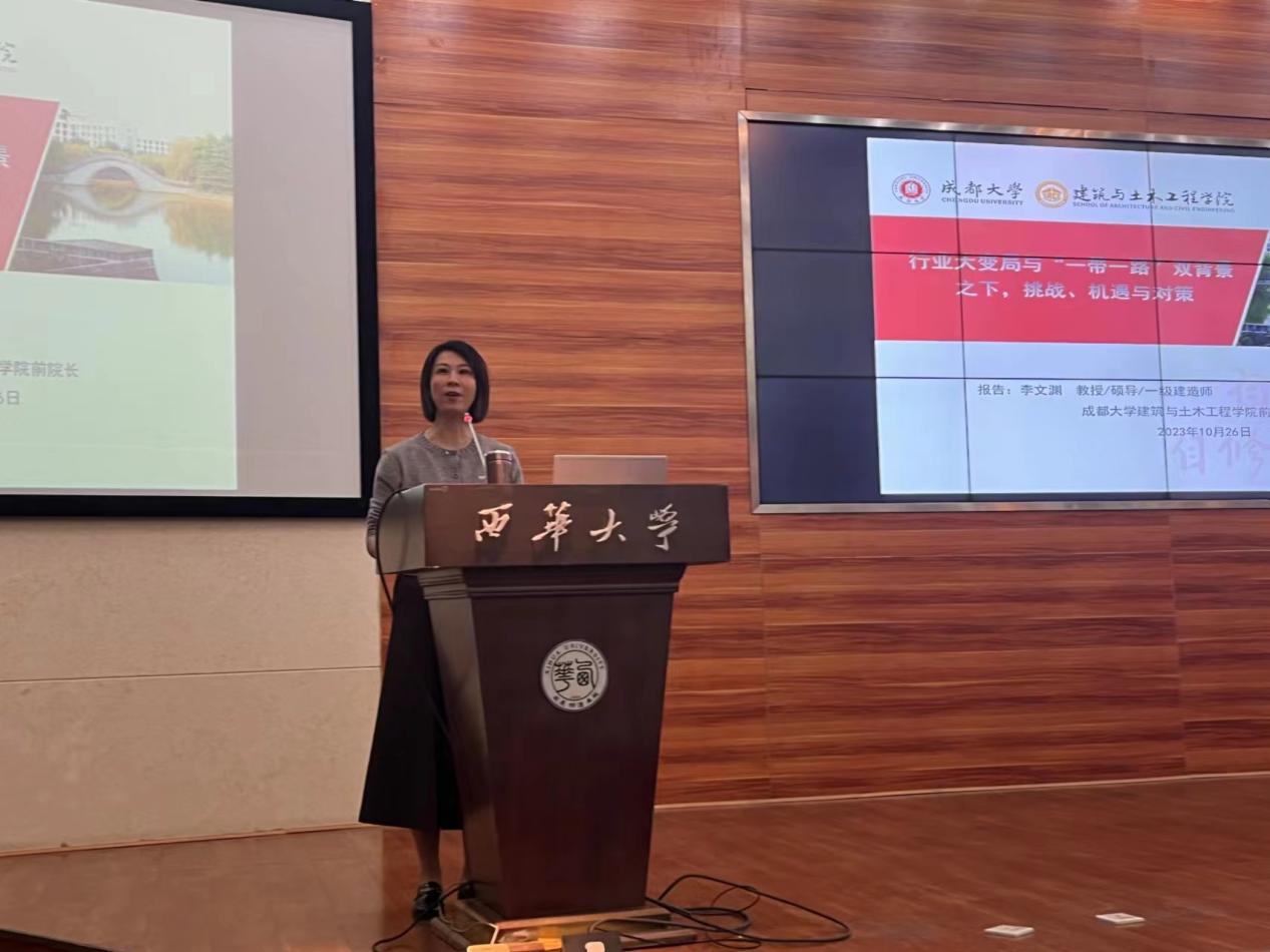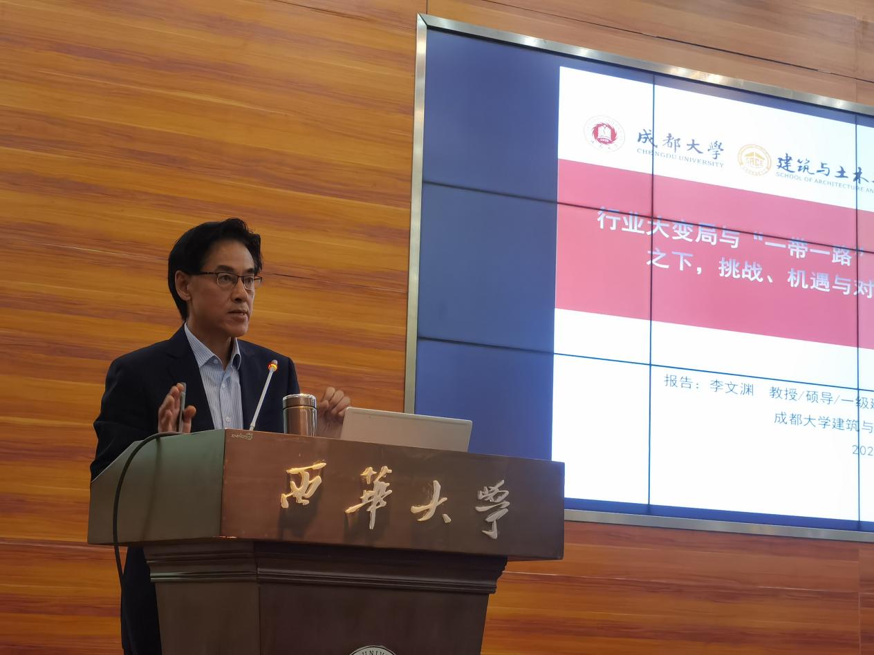 2023年10月26日上午,成都大学建筑与土木工程学院前院长李文渊教授在图书馆报告一厅为我院师生做了关于行业大变局与“一带一路”双背景之下,挑战、机遇与对策的学术报告。学院200余位学生聆听了报告。报告会由建筑与土木工程学院副院长李海凌主持。
