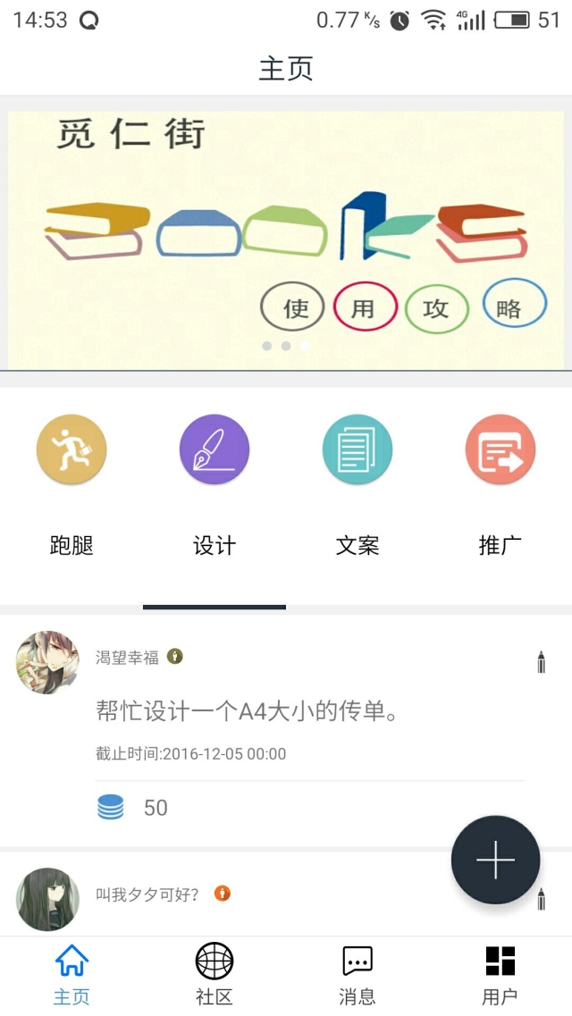 项目名称:觅仁街APP——学生在校实践任务平台