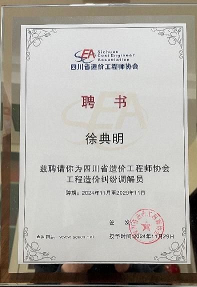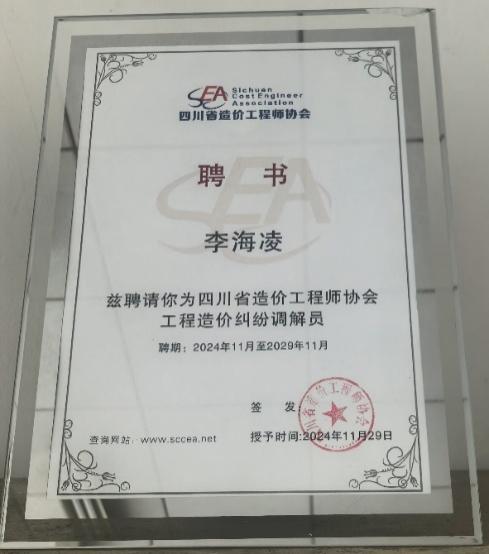 此次聘任活动,旨在满足开展工程造价纠纷调解业务的需要,充分发挥专业人才在建设工程领域造价纠纷化解中的专业优势和作用,加强调解组织建设,提高纠纷调解质量和效率,推动我省建设工程造价纠纷多元化解工作。李海凌、徐典明长期从事工程造价与建设工程合同管理教学科研工作,研究方向涵盖工程合同纠纷风险防控、造价争议智能化解决等领域。此次获聘调解员,二人将深度参与省内重大工程项目的造价争议调解、司法鉴定支持及行业标准修订工作,推动学术成果向实务场景转化。