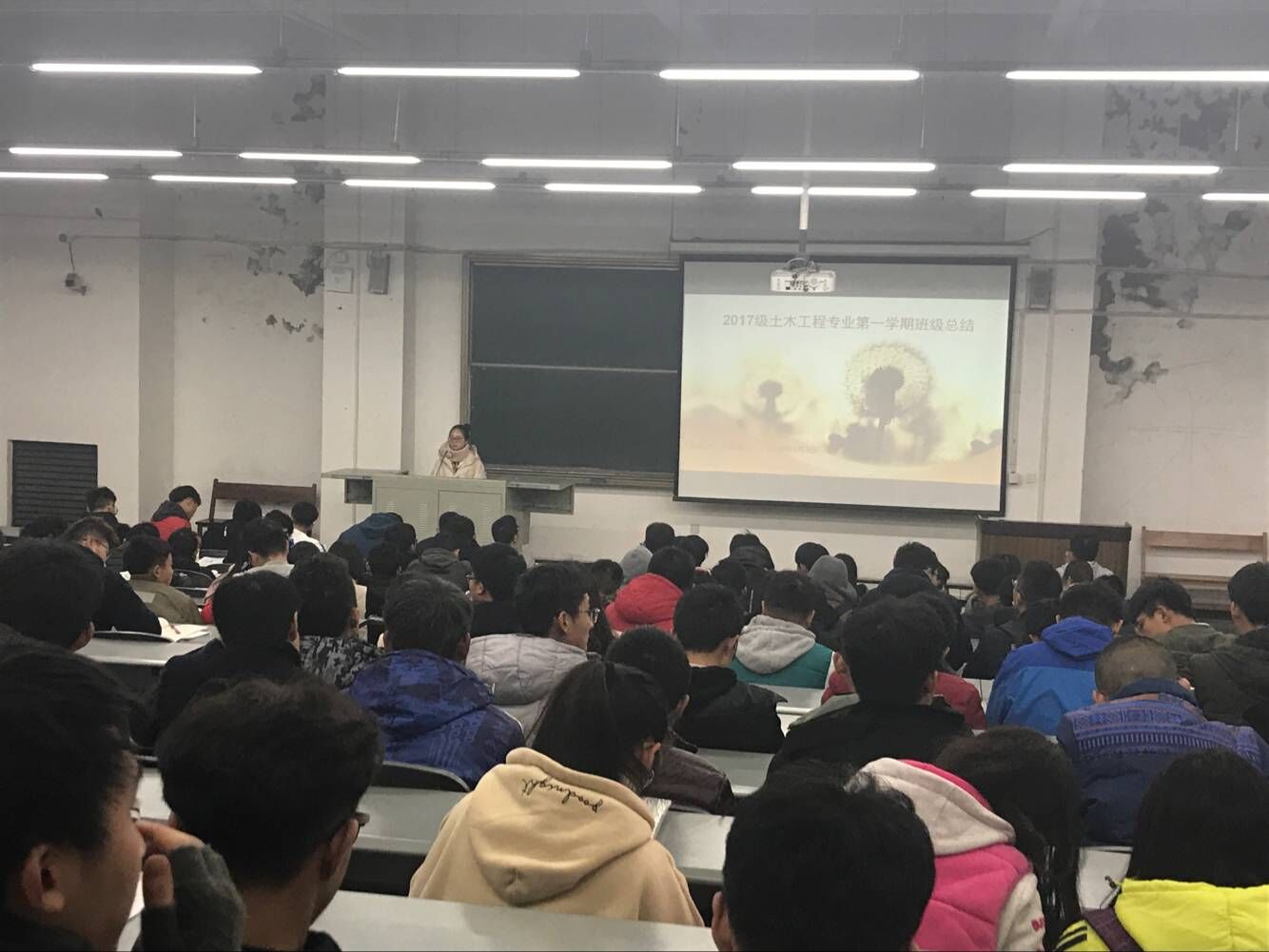 2018年1月3日西华大学土木建筑与环境学院2017级土木工程专业全体学生在6B-307召开了2017-2018第一学期总结班会。班会由辅导员李莹莹老师主持。