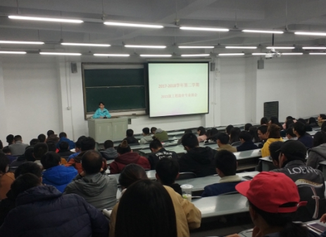 2018年3月4日,2015级工程造价本科专业全体同学在黄锐老师的带领下开展了入学班会活动。黄老师首先讲了本学期的重点工作:迎接本科教学评估。她叮嘱同学们要严格遵守学校规章制度,从日常生活做起,以西瓜籽良好的风貌迎接专家的评估。接着就是曾经多次提醒过的校园网贷的危害,不抱侥幸心理,同学们更要合理规划自己的生活,不过度消费。针对普遍学习态度消极的情况,土木建筑与环境学院也新增了“淘汰制”:旷课次数,学习成绩,违纪情况等都被纳入考核范围,每一年1%的名额。这项制度的设立,目的在于改善学院整体学习风气,也让同学们学会承担自己的责任与义务。黄老师还交代了各自班上个别需要班委密切关注的同学,学习上,生活中,思想上都要班委多留心。本学期的市政工程计量计价,安装工程计量计价,房地产投资与融资三门课程都是同学们工作以后经常用到的专业知识,虽然本学期课程较少,黄老师提醒同学们在兼职或实习的同时一定不能落下学校理论课程的学习,同学们平时有事要出去的,也最好跟室友或者老师说一下,毕竟社会复杂,同学们也还单纯,如果发生意外,能及时救助。其次是在校安全方面,要防微杜渐,不使用违章电器,不乱接乱搭,营造良好的宿舍环境。最后还特别强调了禁止校外住宿的问题。