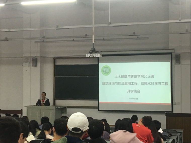 3月5日中午12:20,土木建筑与环境学院2016级建筑环境与能源应用工程、给排水科学与工程专业于6B-307教室召开了开学班会。学院党委副书记、副院长顾鸿飞出席会议。