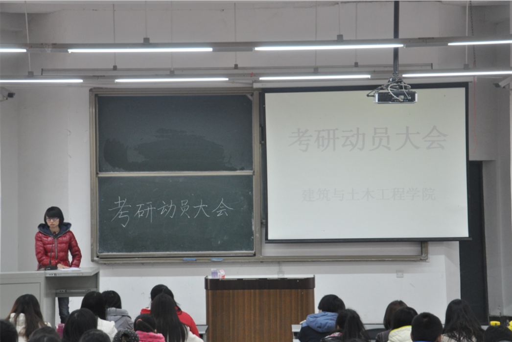 12月5日,2013-2014年建筑与土木工程学院考研动员大会在6B-102举行,许多有志于考研深造的同学齐聚于此,聆听着黄锐老师的讲解。