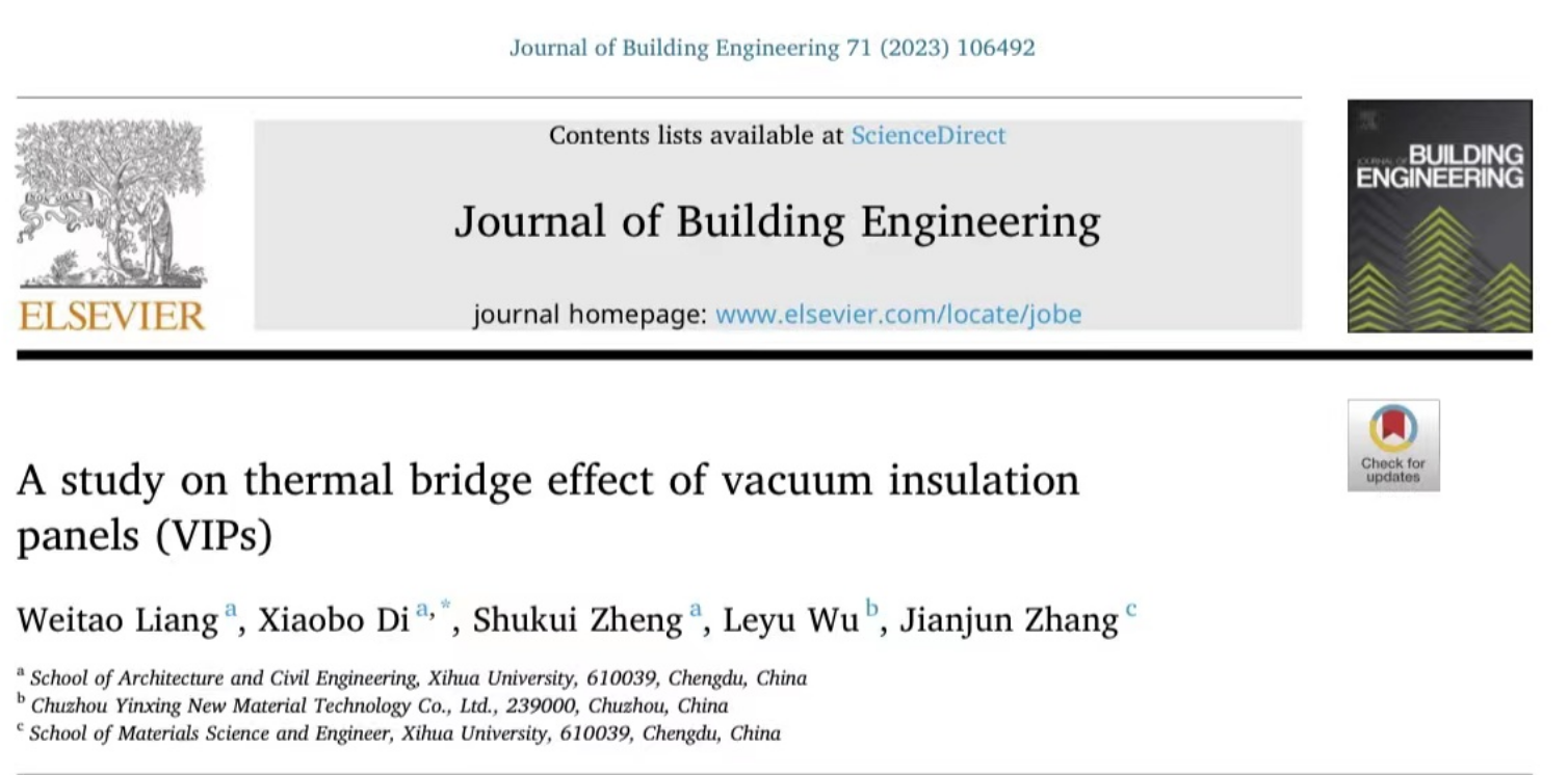 近期,由建筑与土木工程学院工程管理系邸小波博士指导的2020级土木水利硕士研究生梁惟滔作为第一作者在国际知名期刊Journal of Building Engineering发表题为“A Study on Thermal Bridge of Vacuum Insulation Panels (VIPs)”的研究论文。邸小波博士为论文的通讯作者,郑澍奎副教授为第三作者,西华大学为论文的第一完成单位和通讯单位。期刊《Journal of Building Engineering》为中科院SCI分区2区,影响因子7.14,录用率约为20%。作为工程技术领域的跨学科期刊,《Journal of Building Engineering》涵盖了与建筑环境全生命周期(从设计阶段到施工、运营、性能、维护和拆除)相关各方面的科学和技术,该期刊只发表明确证明具有重大科学新颖性的论文。