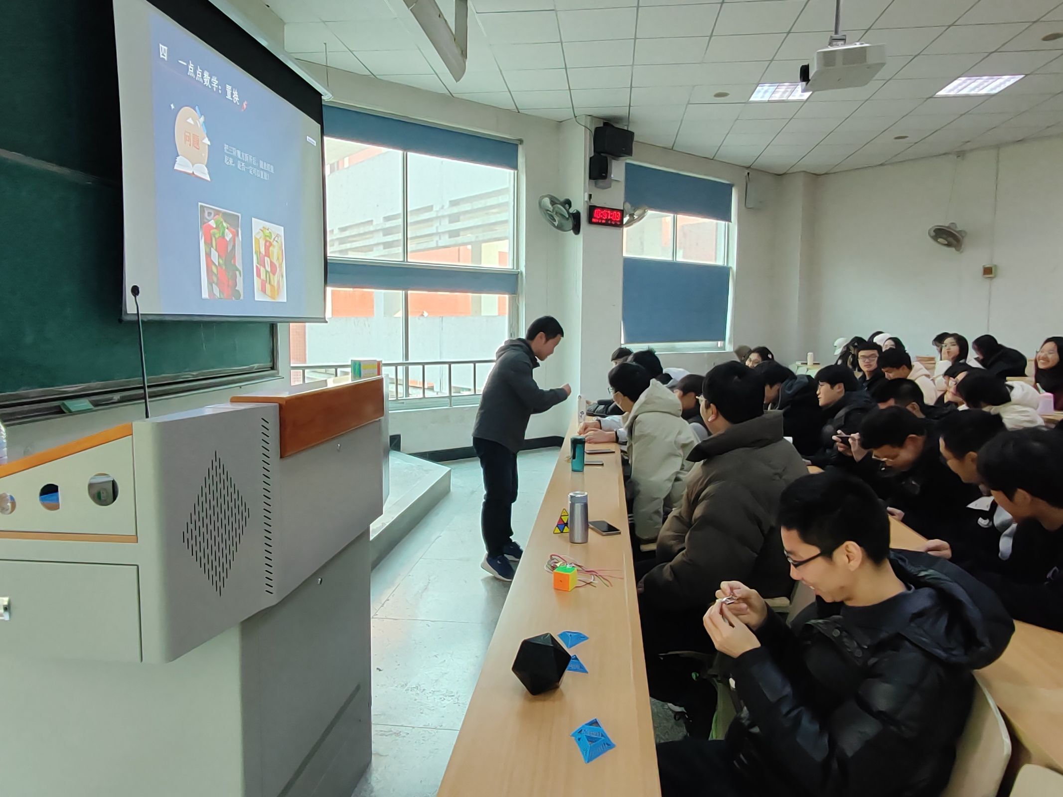 2023年12月29日,“魅力魔方”活动在西华大学4A-301举行。活动由华中师范大学博士后李尧其老师主讲,2023级数学与应用数学专业班导师、数学专业全体学生参与。