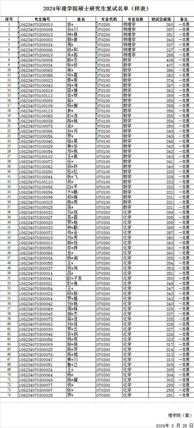 2024年理学院硕士研究生复试名单公示