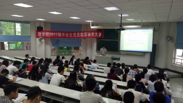 5月22日,理学院在4A-102教室召开毕业生党员教育及组织关系转接动员大会。理学院党委副书记兼副院长李欣、数学与应用数学专业学生党支部书记刘伟、化学专业学生党支部书记杨玉强、信息与计算科学专业学生党支部书记王筱莹,及理学院全体毕业生党员参加了此次大会。