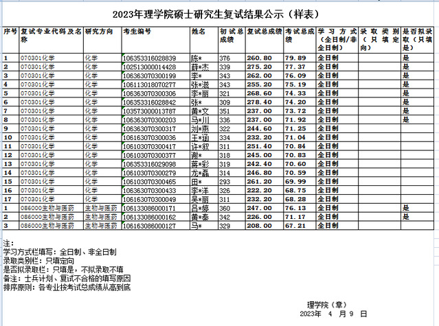 2023年理学院硕士研究生化学、生物与医药复试结果公示