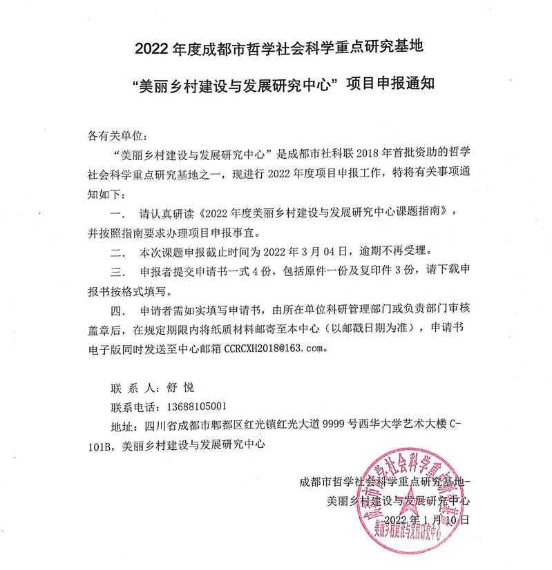 附件:【2022年度美丽乡村建设与发展研究中心项目申报通知.pdf】