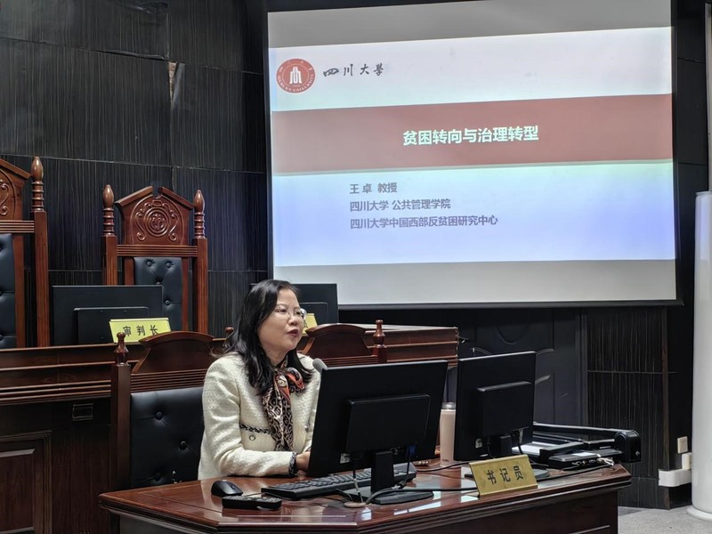 11月17日下午,法学与社会学学院邀请四川大学公共管理学院王卓教授在新模拟法庭开展“新时代相对贫困治理转型”主题讲座。讲座由副院长熊征主持,社会工作系主任刘婷、杨明华老师及2022级社会工作专业、社会学专业研究生、2022级社会工作专业本科生参加此次讲座。