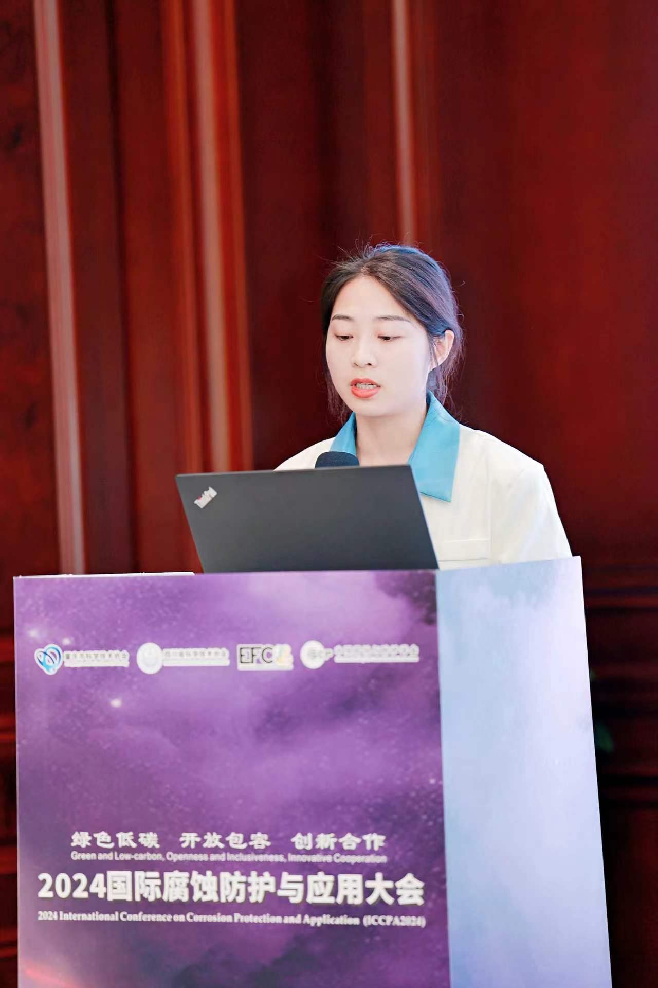我校材料科学与工程学院梁孟霞博士带队参加了本次会议,其指导的2022级硕士研究生陈李倩同学在“海洋材料腐蚀与防护”分会场作题为“Corrosion of Commercial Titanium Alloys in High-Chloride and High-Alkali Seawater Electrolysis Environment”的学术报告。