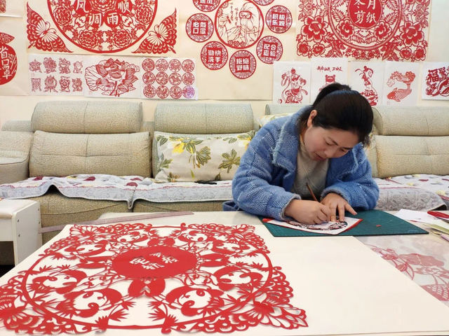 从三月初开始,这些剪纸陆陆续续花费了她一个多月的时间。大大小小的剪纸铺满了汪孝君的家,“连落脚的地方都没有。” 汪孝君笑言。