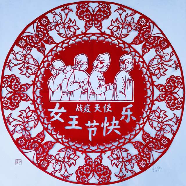 疫情爆发后,成千上万医护工作者不顾个人安危,逆行一线,为患者的生命健康保驾护航。面对这些“逆行者”,汪孝君深受感动,她也想为抗疫做点什么。思来想去,她决定用自己最爱的剪纸艺术来致敬一线工作人员、传递抗疫信心、增强大家的防疫意识。“当时在老家,手边也没有纸,就用报纸随便剪了一些图片,然后发到了抖音里面。”汪孝君说,“没想到的是,这‘随便’剪的剪纸,却收到了很多人的点赞。”于是,汪孝君便萌发了做抗疫系列剪纸的想法。