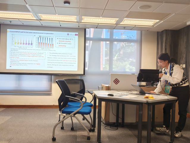 12月1日上午,卜素贝老师作了题为“A novel BIPV/T wall for hot water-electrical power co-generation”的报告,介绍了团队在建筑集成光伏/光热(BIPV/T)技术的研究成果和方法。该报告引起了与会专家及业界人士的广泛关注与高度认可,报告结束后,卜老师与多位学者进行了深入的交流,共同探讨太阳能光伏的最新研究进展与发展方向。