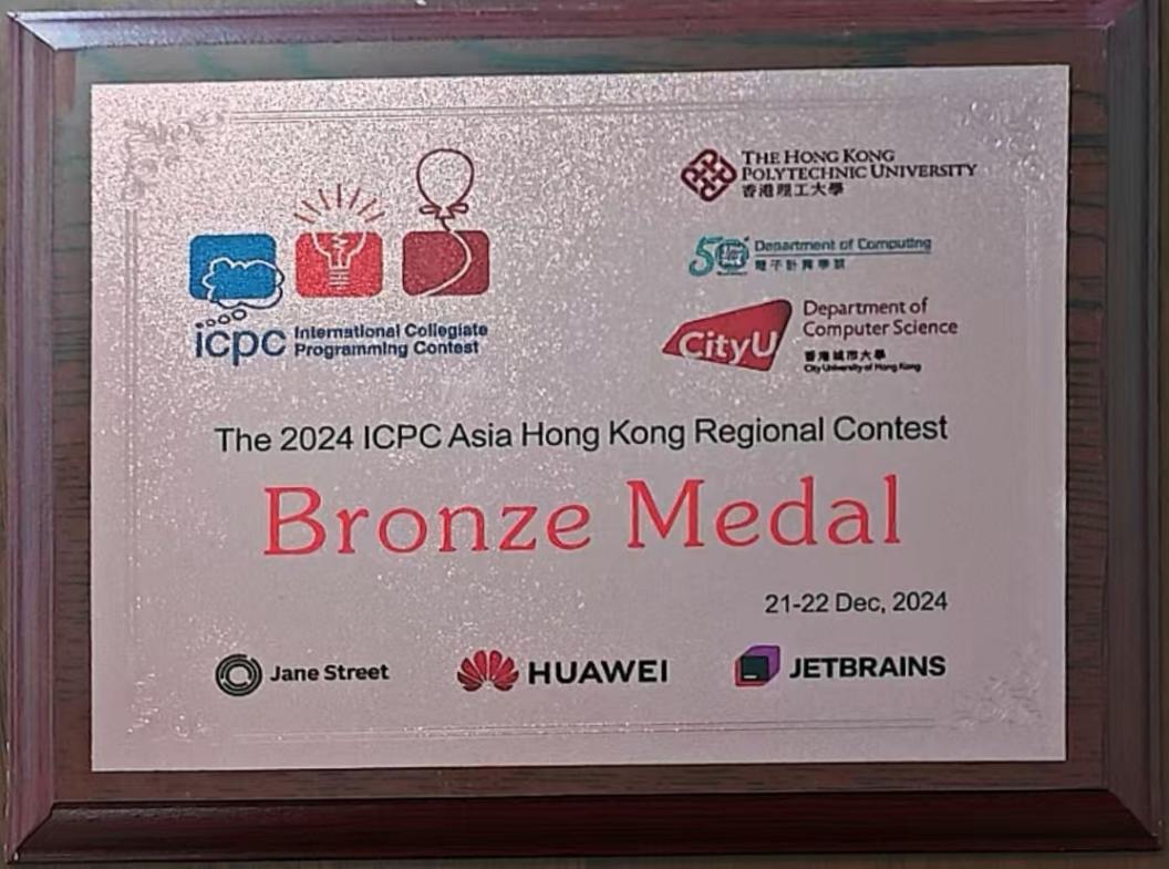 12月21日-22日,由香港理工大学和香港城市大学联合承办的第49届ICPC国际⼤学⽣程序设计竞赛东亚洲区域赛(港澳)圆满落幕。由我校ACM创新实验室的石浩楠、谢维文和吴岚轩三位同学组成的西华大学代表队在指导老师陈红红的带领下参加了本次比赛,并以出色的表现荣获大赛铜奖。这是西华大学首次在ICPC国际大学生程序设计竞赛亚洲区域赛中获奖。