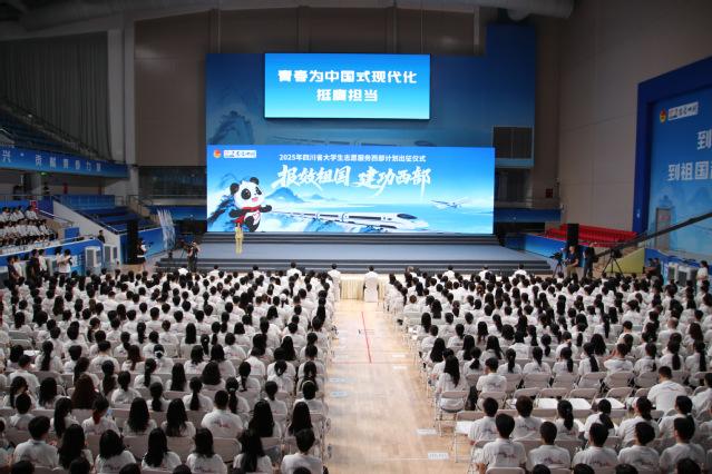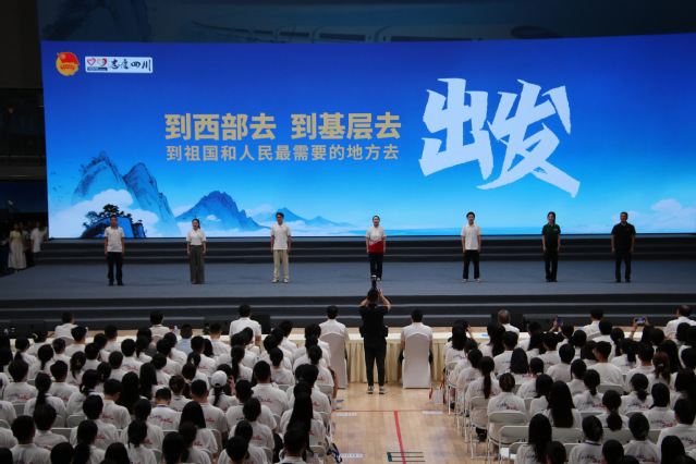报效祖国,建功西部。7月18日,2025年四川省大学生志愿服务西部计划出征仪式在西华大学体育馆举行。