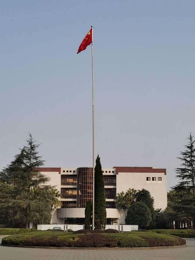 早上7:30,学校在明德广场举行了升旗仪式,在宁静的校园里,庄严的国歌声响起,鲜艳的五星红旗在早春的校园里冉冉升起。