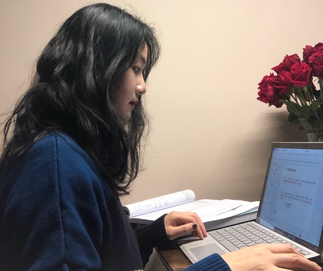 徐佐彦本学期承担了四门课程,她和团队教师分工合作,负责录制《哲学与批判性思维》。为了顺利完成教学,专业课的计划几乎全部重写,授课侧重点也随之改变——以读促学。由于没有电子教材,为了给学生们寻找合适的阅读材料,徐佐彦开启了“疯狂”的搜寻模式,比较不同版本、找电子版、确定阅读章节,还要制作适合线上的测验题,讨论题……眼睛花了,腰酸了,一天很快就过去了。