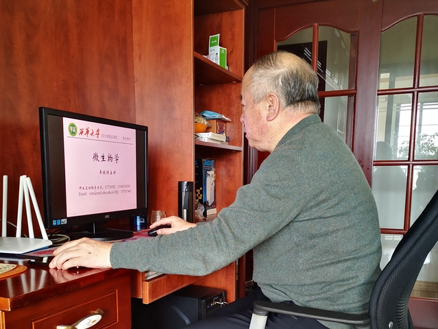 这门课,车振明已经讲了三十多年,本来是很熟悉的,但是通过网络教学还是第一次。以前曾看到其他教师用“云班级”“雨课堂”辅助教学,线下线上互动,当时觉得耳目一新,很是羡慕,但他总觉得自己已经60岁了,不再去学了。没想到是这次疫情突然,必须进行网络授课。接到学院通知后,车振明加班加点学习,观摩了数十个兄弟院校的课程网站,选择了超星教学平台,建立了网上课程,上传了教学资料,试录了教学短视频,引导同学们进入网络教学班,下载“学习通”APP,做好了网上开课的一切准备。为弥补由于首次进行网络教学经验不足带来的影响,他和同学们建立了QQ群和微信群,随时随地保持互动,确保学生通过看资料、观视频、听语音、做练习、问问题等全方位、立体式教学环节,达到应有的教学要求。