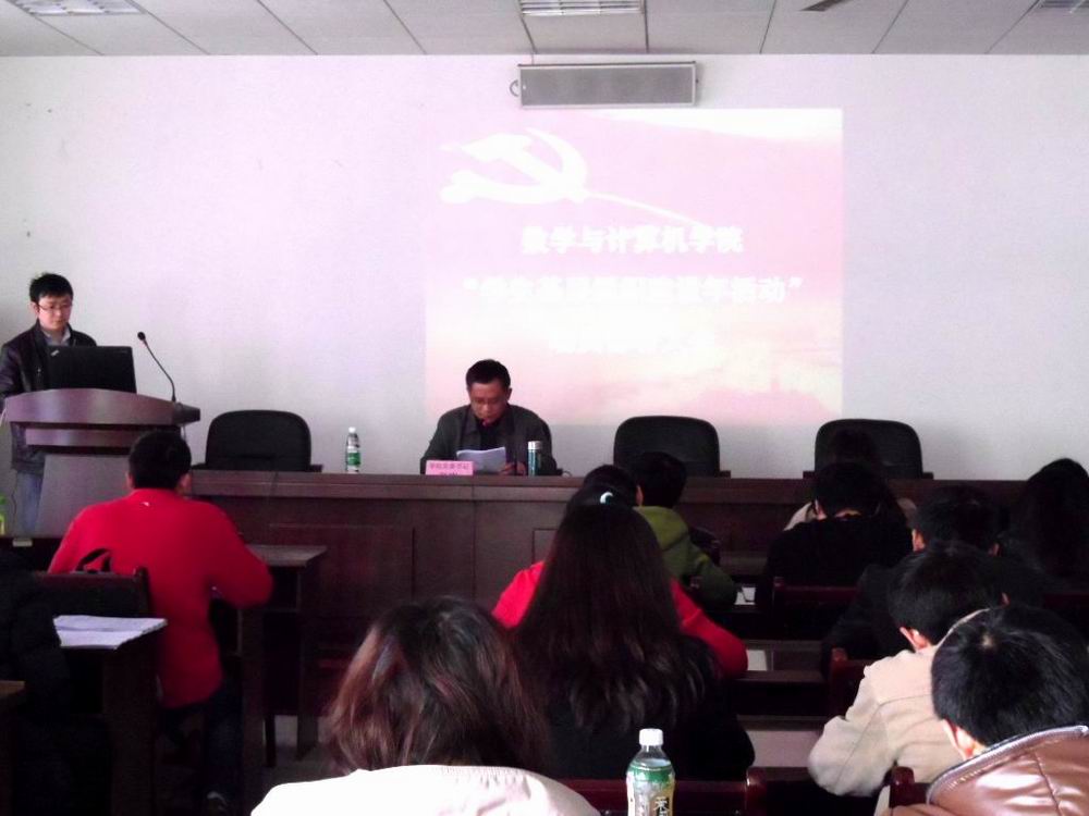3月19日中午,数学与计算机学院在6A520召开了学生党员“基层组织建设年”动员部署大会。学院党委书记张岩,学院党委副书记毕达平,学院学生党总支书记赖霞,学院学生党总支各委员以及学院全体学生党员参加了此次动员会。