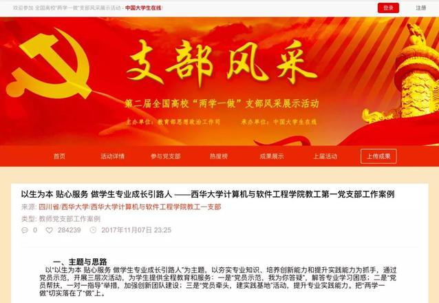 2017年该党支部成功入围教育部第二届全国支部风采大赛,党支部工作案例还发布在教育部网站公开展示。2018年支部被评为优秀基层组织。