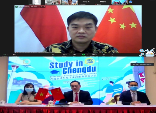 4月8日下午2点半,由成都市人民政府外事办公室、成都市教育局会同中国驻泗水总领事馆、中国驻胡志明市总领事馆共同举办,西华大学承办的“留学成都——在蓉高校与奖学金政策海外宣讲会”(线上)在西华大学八教410会议室顺利举行。中国驻泗水顾景奇总领事、中国驻胡志明市吴骏总领事、成都市人民政府外事办公室姜斌主任、成都市人民政府外事办公室欧玉松副主任、成都市人民政府石斌总督学、西华大学副校长费凌教授出席了本次宣讲会。