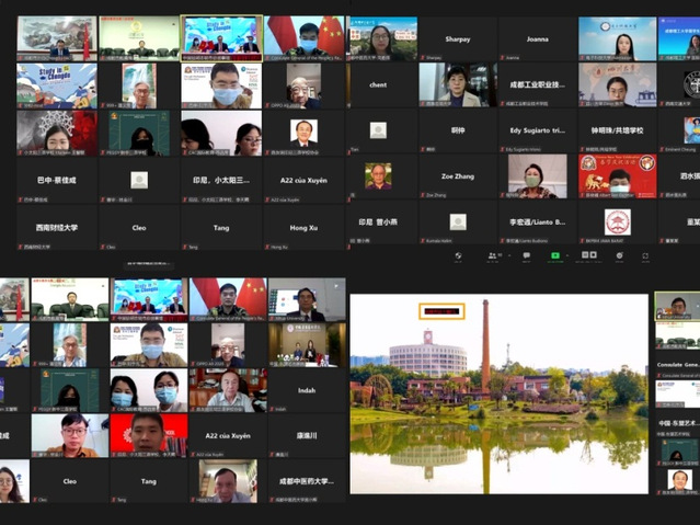 在本次宣讲会上,西华大学、四川大学、电子科技大学、西南交通大学、西南财经大学、西南石油大学、成都中医药大学、成都理工大学、成都大学、成都农业科技职业学院、中国东盟艺术学院共11所在蓉高校相聚云端,共同分享各高校的招生与来华留学生奖学金政策,此次宣讲会圆满成功。